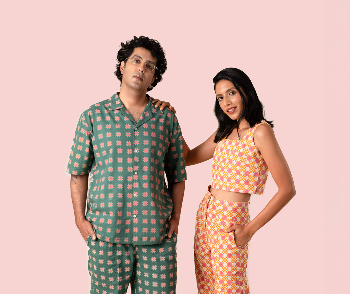We are committed to using only natural fibers & materials and thus use handloomed kala cotton, khadi, organic cotton (GOTS certified) and silk with wood, hand-casted brass or shell buttons on our garments.